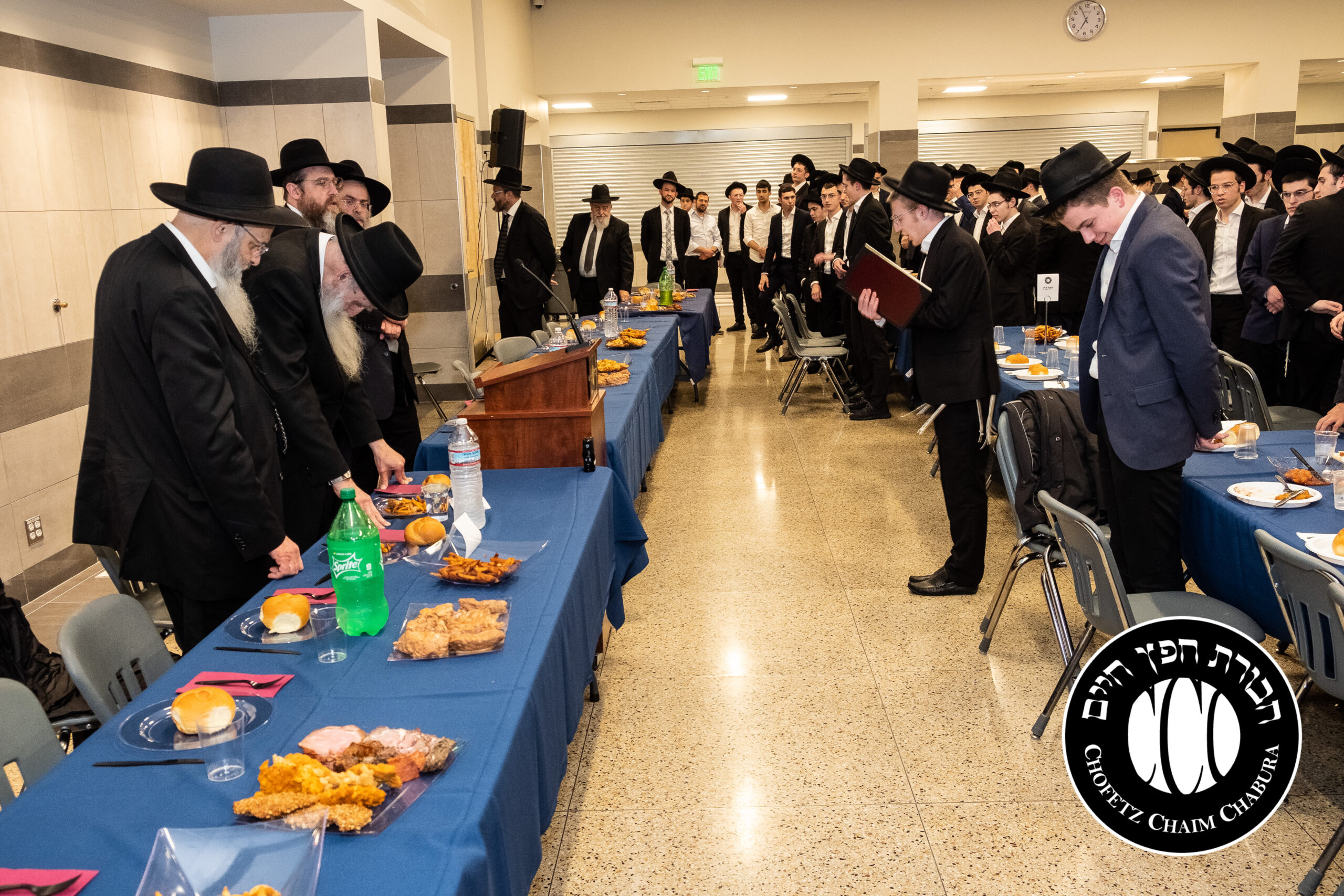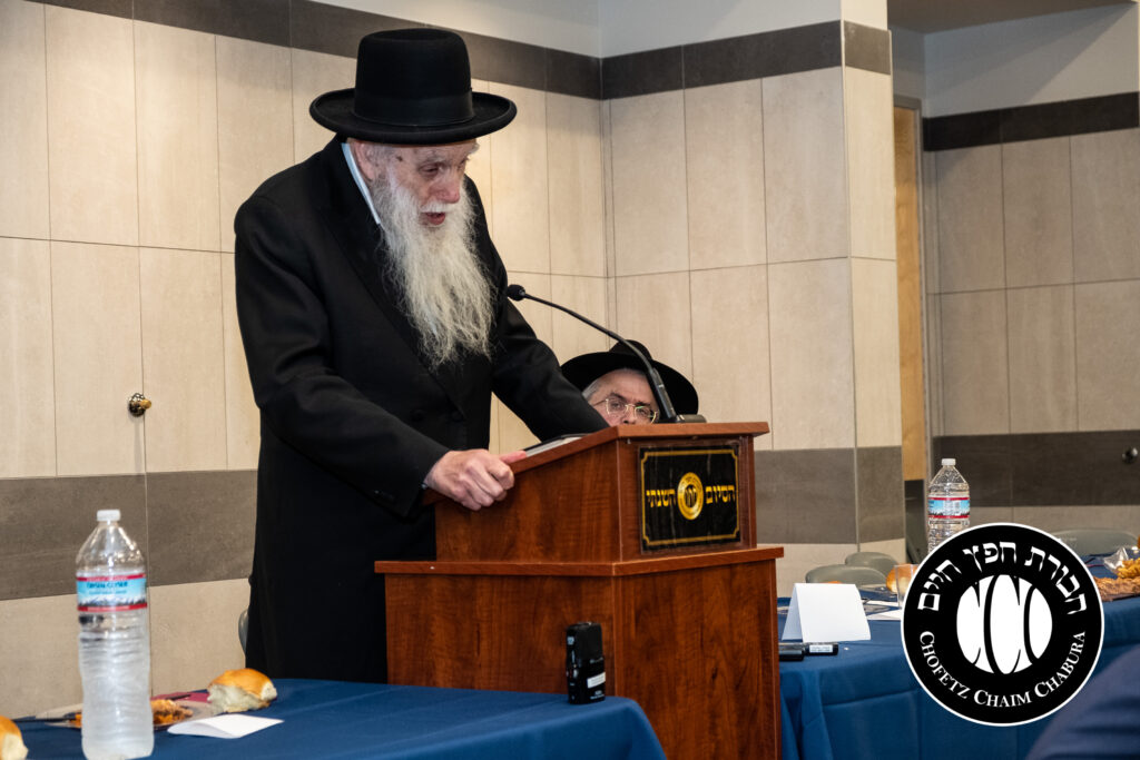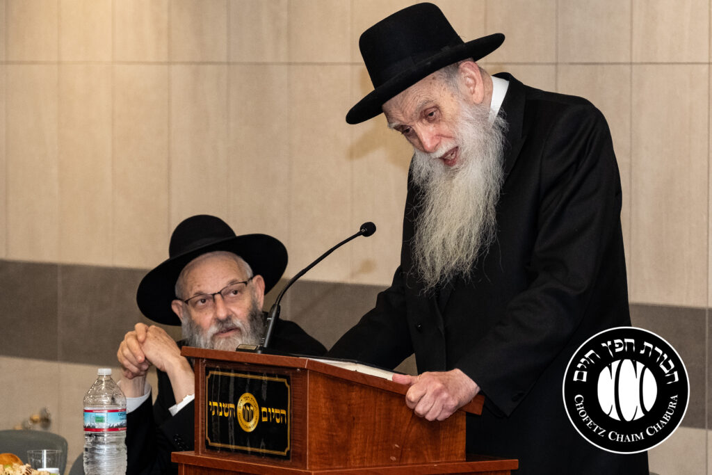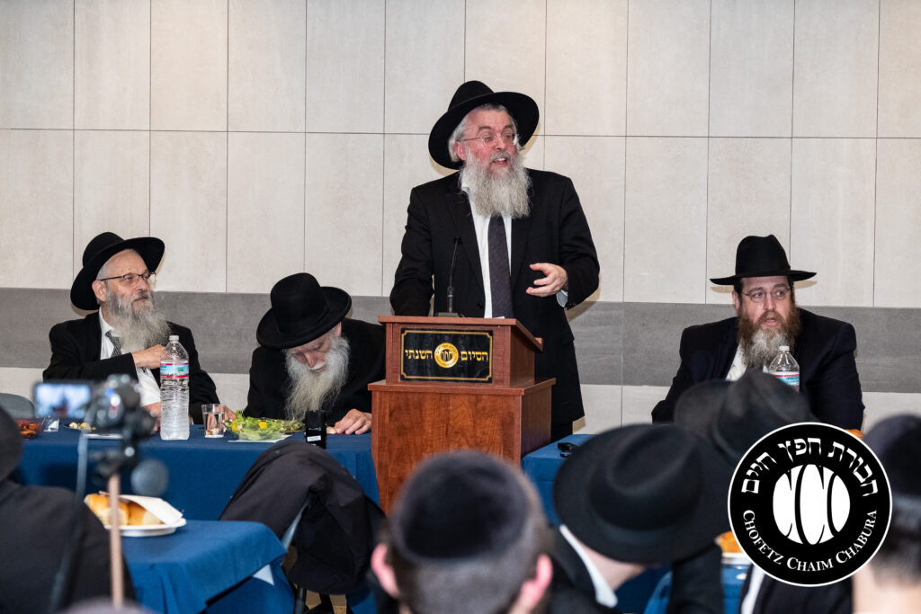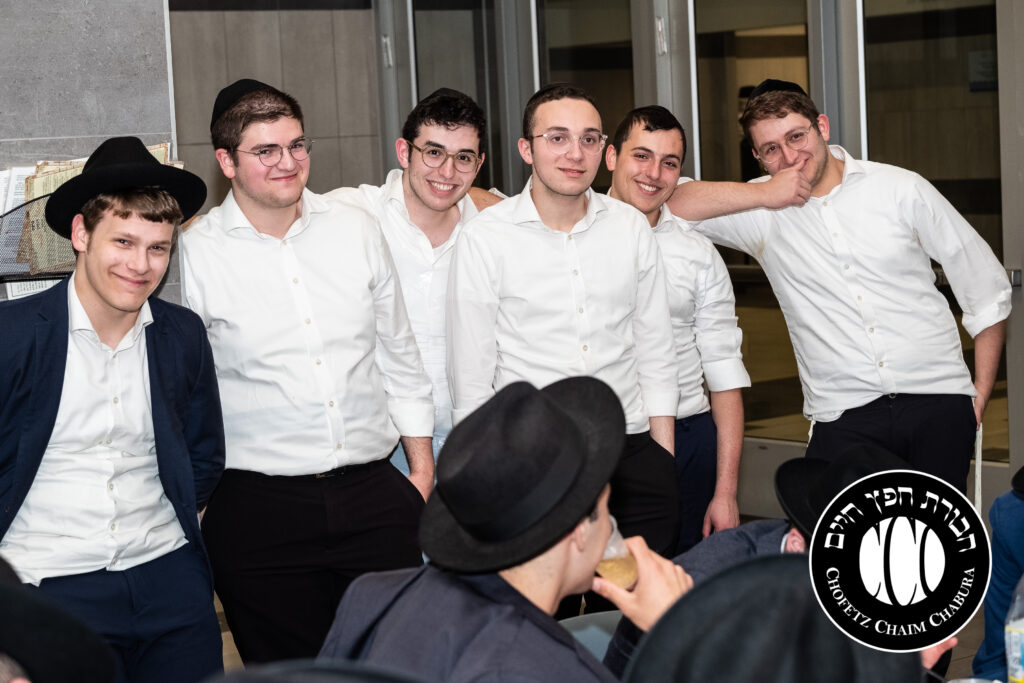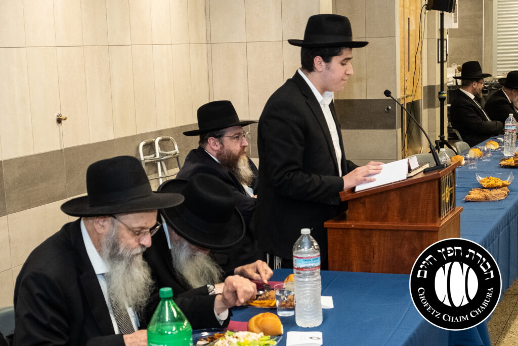 Nearly 300 bochurim in the Yeshiva and Mechina learn Sefer Chofetz Chaim (or other Shmiras HaLashon-related chiburim) six days a week. This Chabura, which was started by the bochurim themselves, had reached the end of the Sefer, and gathered to be misayim with a bakavodikke Seuda.