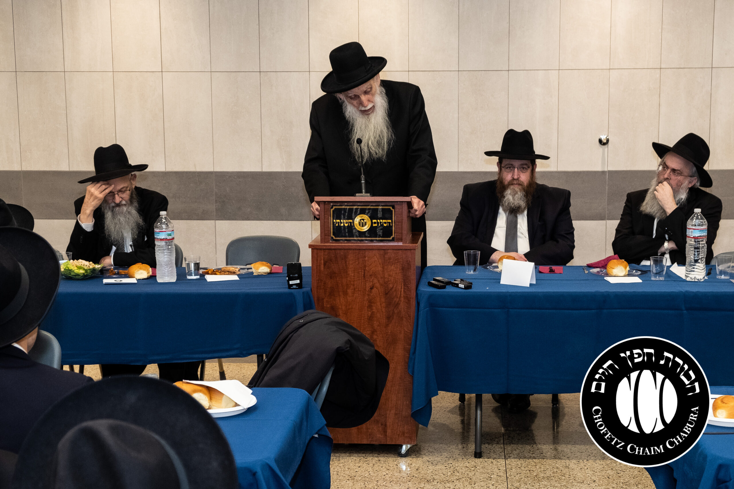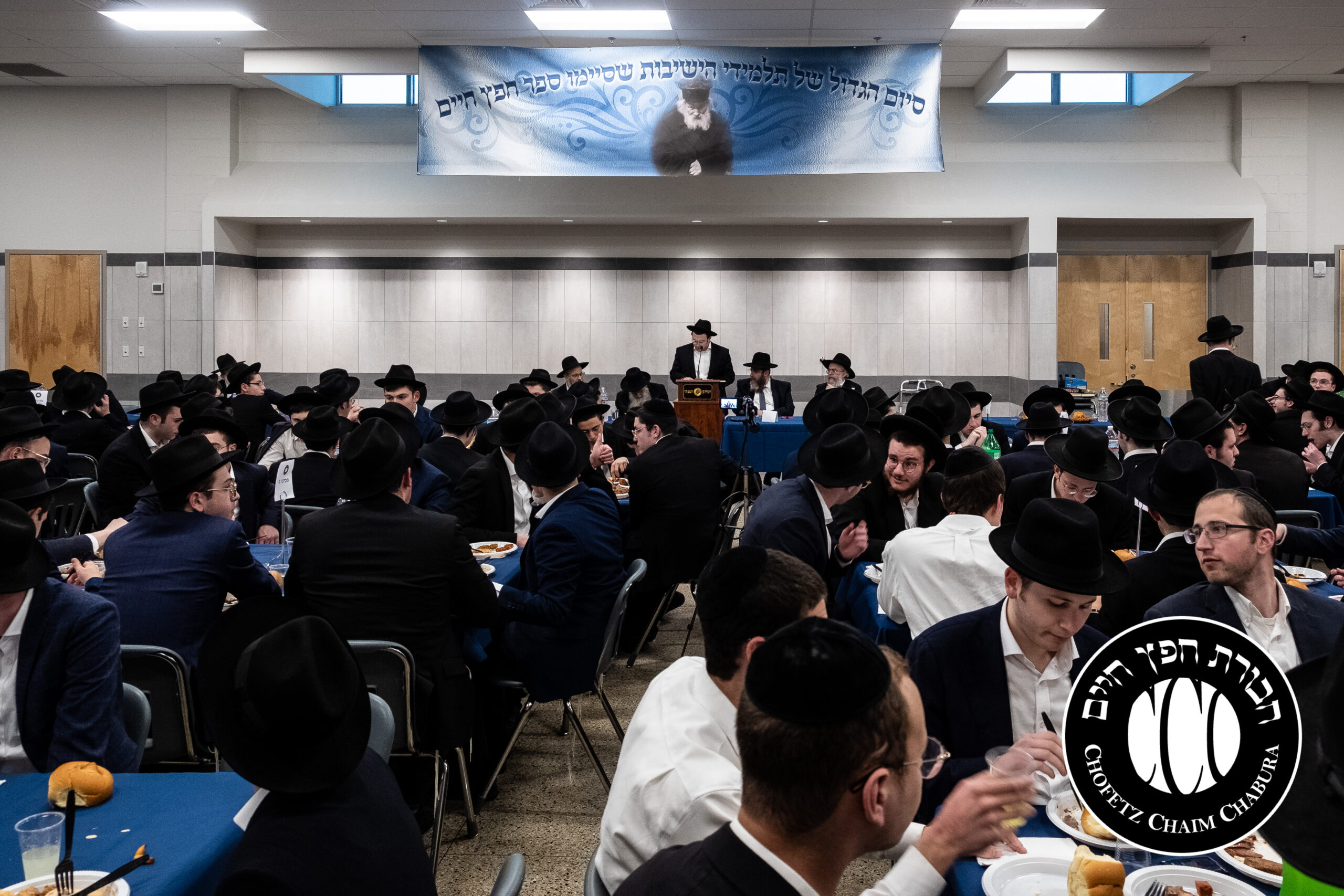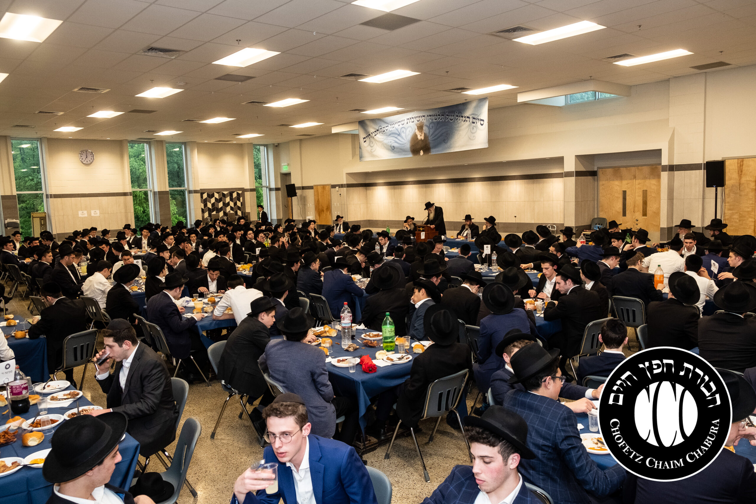 Nearly 300 bochurim in the Yeshiva and Mechina learn Sefer Chofetz Chaim (or other Shmiras HaLashon-related chiburim) six days a week. This Chabura, which was started by the bochurim themselves, had reached the end of the Sefer, and gathered to be misayim with a bakavodikke Seuda.