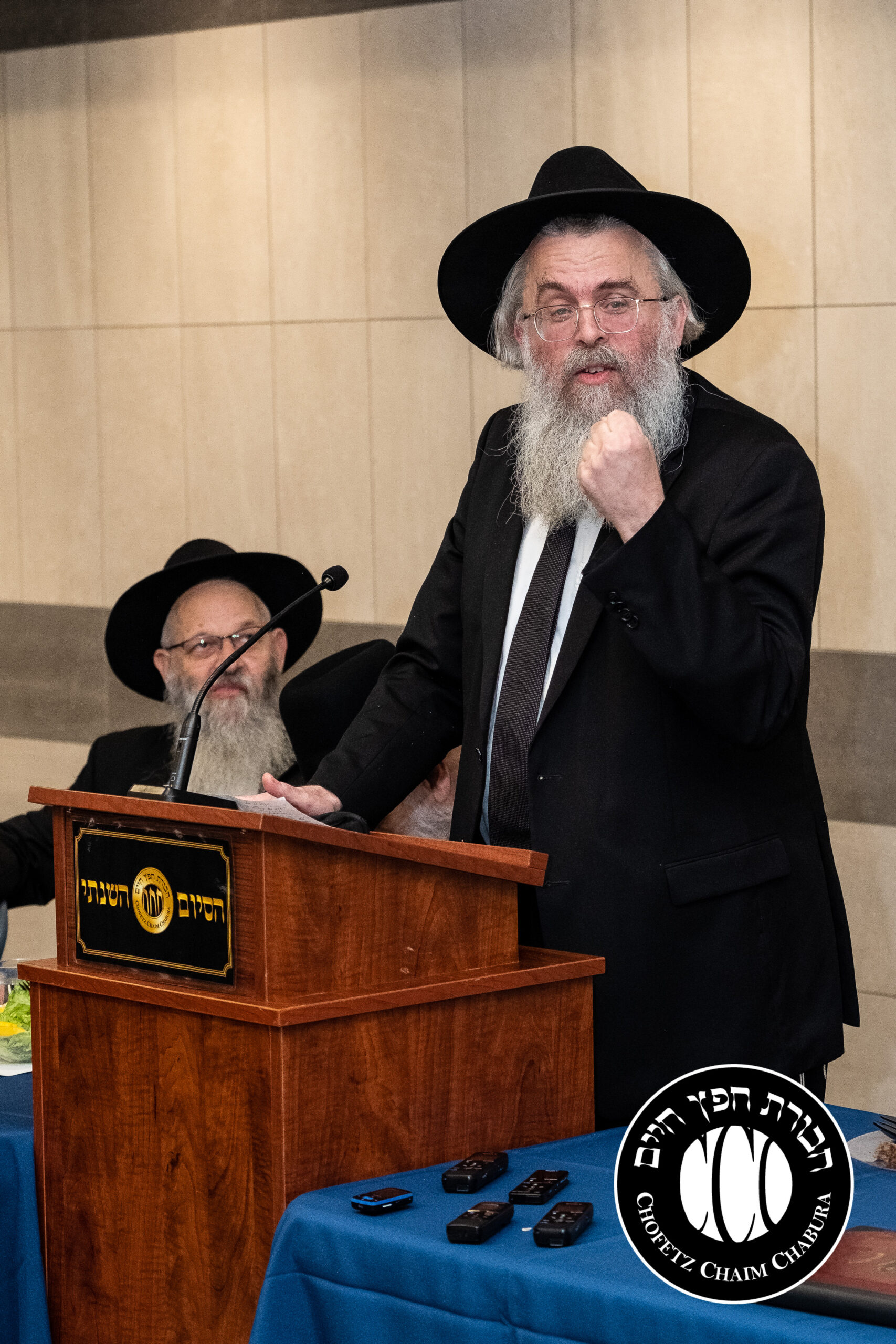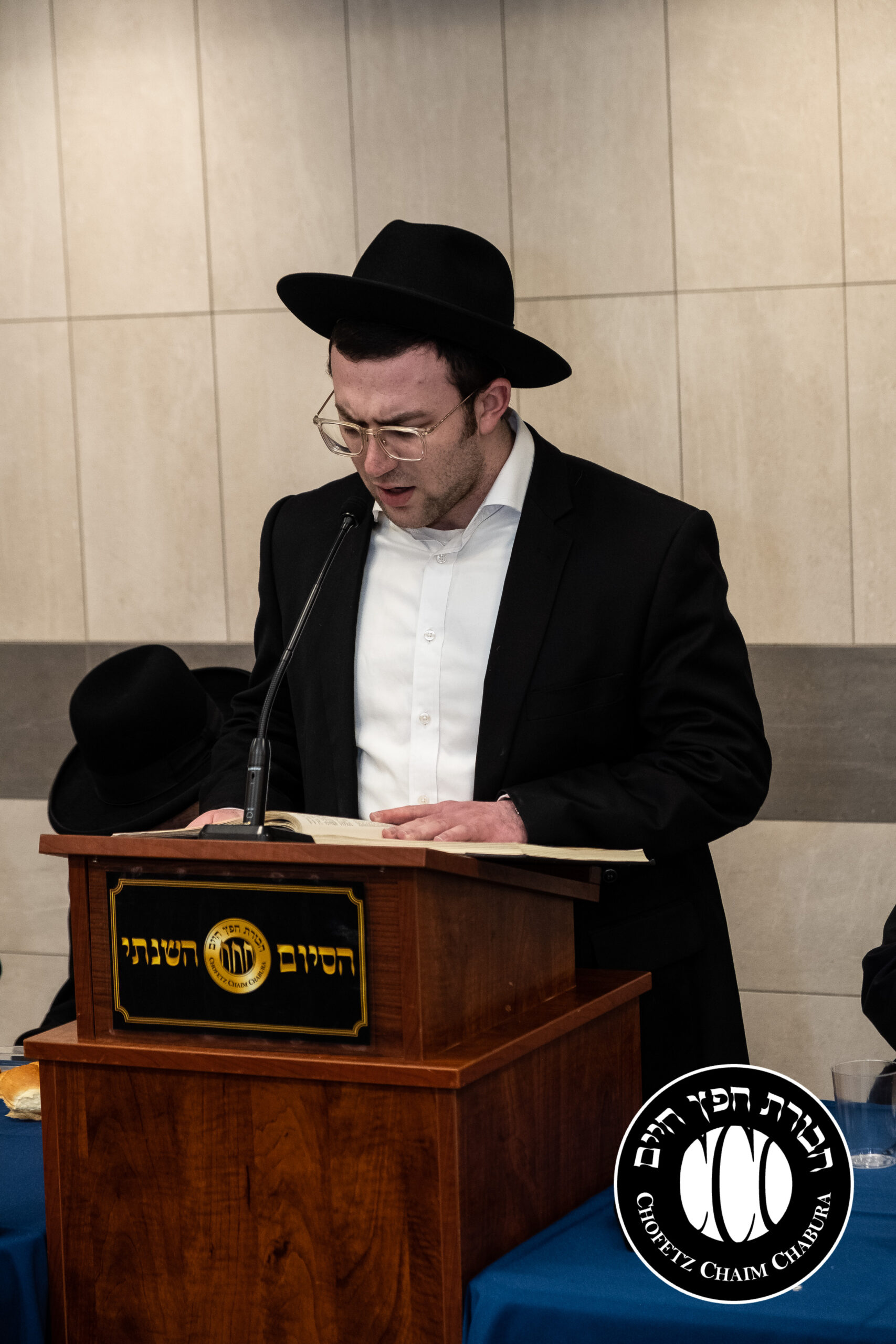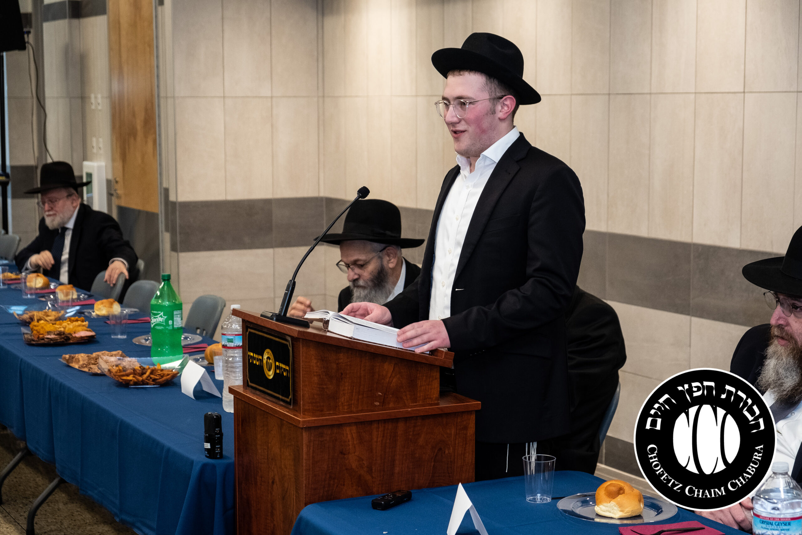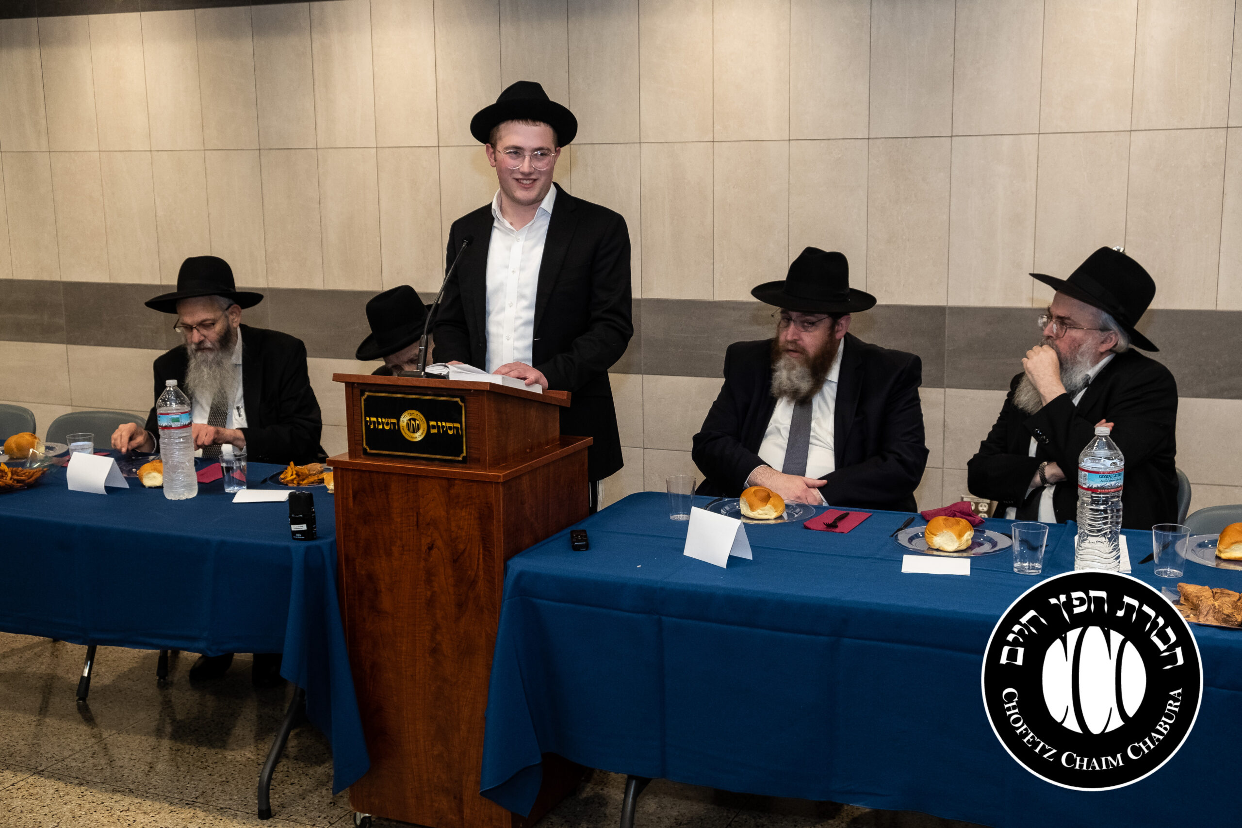 Nearly 300 bochurim in the Yeshiva and Mechina learn Sefer Chofetz Chaim (or other Shmiras HaLashon-related chiburim) six days a week. This Chabura, which was started by the bochurim themselves, had reached the end of the Sefer, and gathered to be misayim with a bakavodikke Seuda.