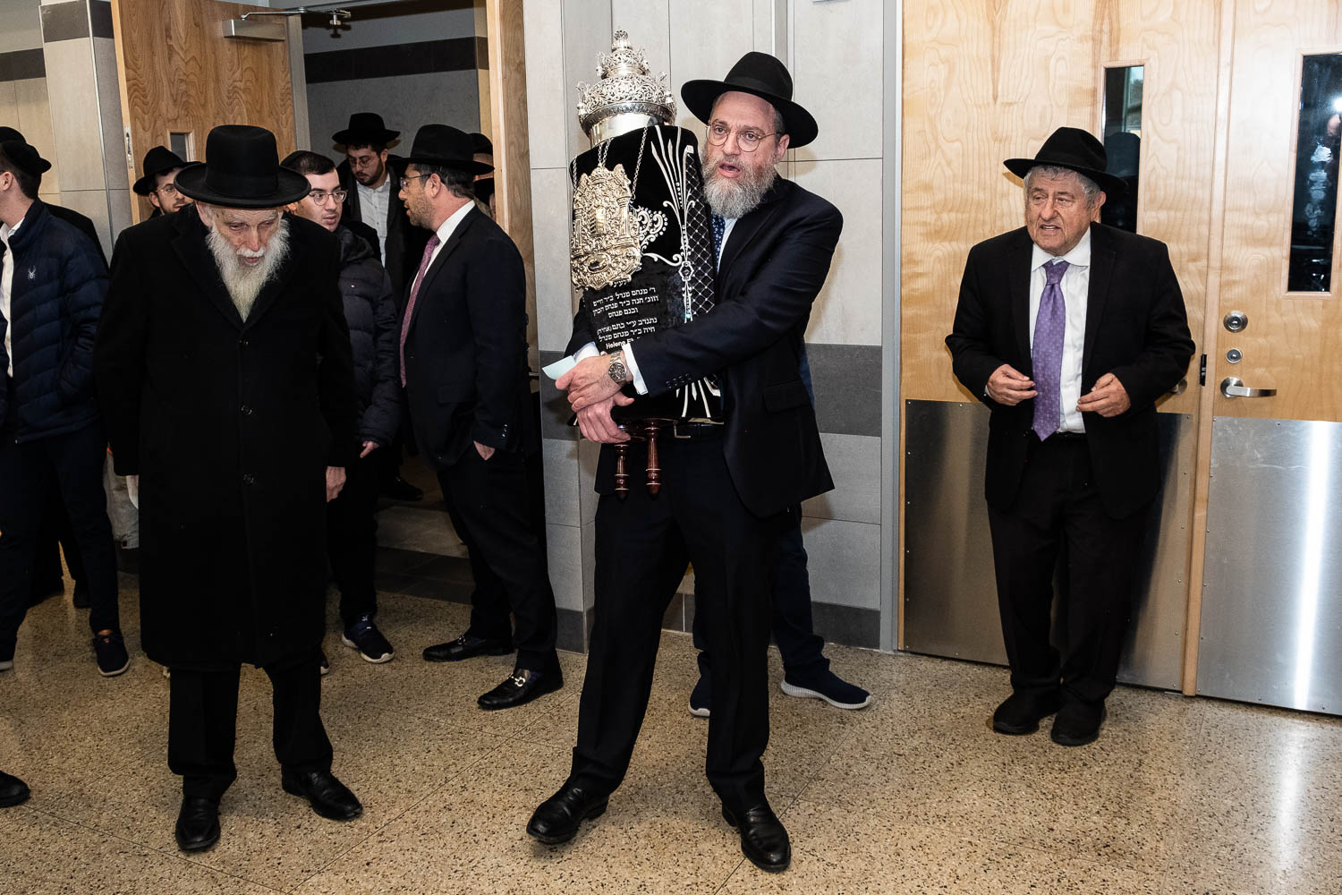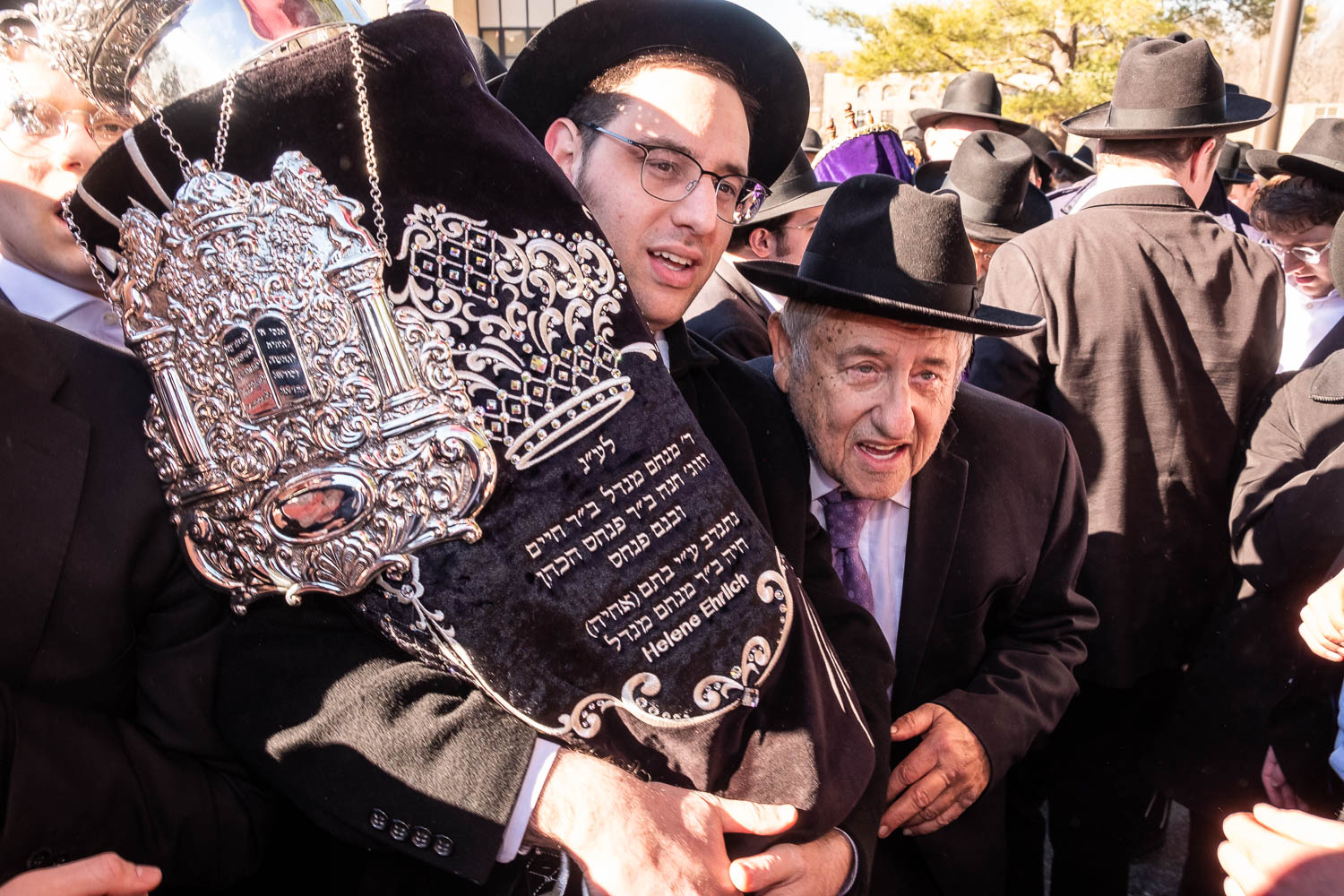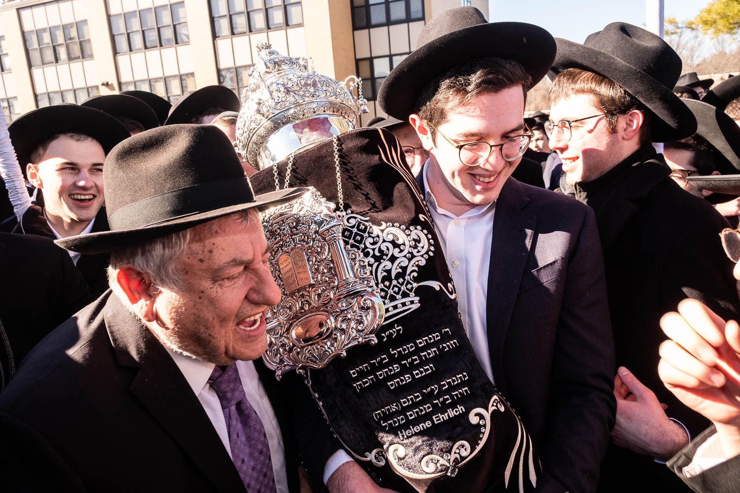 On Sunday, February 6th Yeshivas Ner Yisroel held an Hachnosas Sefer Torah on campus. The Torah was donated by Mrs. Helen Ehrlich of Los Angeles, California. Mrs. Ehrlich was introduced to Ner Yisroel by Mr. Menachem Klein, also of Los Angeles.  Mr. Klein is a longtime supporter of the Yeshiva whose son’s Calev, Reuven and Yehuda Klein and son-in-law Shimon Beinstock are Ner Yisroel alumni.
