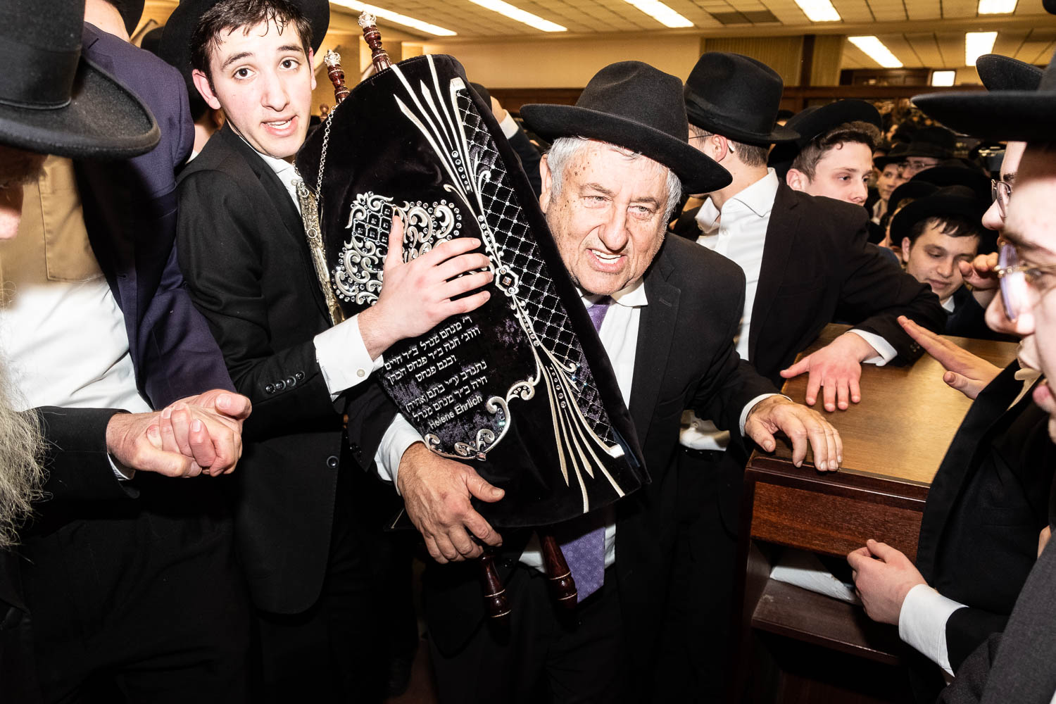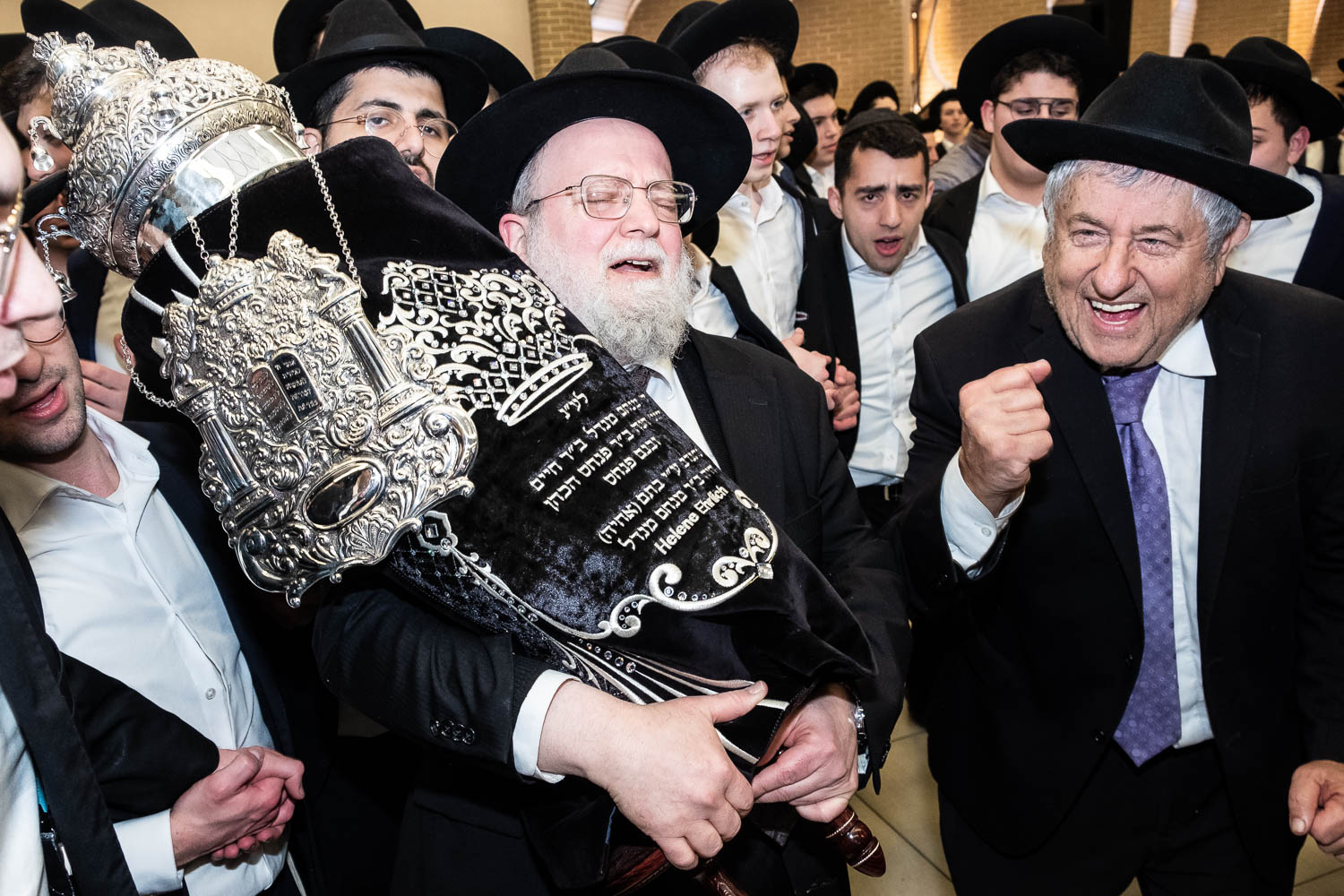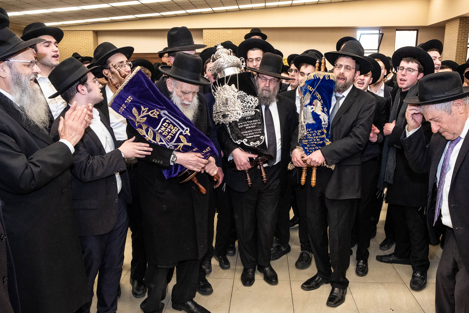 On Sunday, February 6th Yeshivas Ner Yisroel held an Hachnosas Sefer Torah on campus. The Torah was donated by Mrs. Helen Ehrlich of Los Angeles, California. Mrs. Ehrlich was introduced to Ner Yisroel by Mr. Menachem Klein, also of Los Angeles.  Mr. Klein is a longtime supporter of the Yeshiva whose son’s Calev, Reuven and Yehuda Klein and son-in-law Shimon Beinstock are Ner Yisroel alumni.