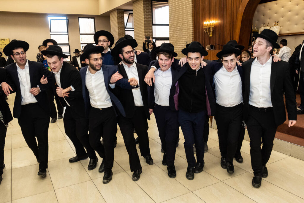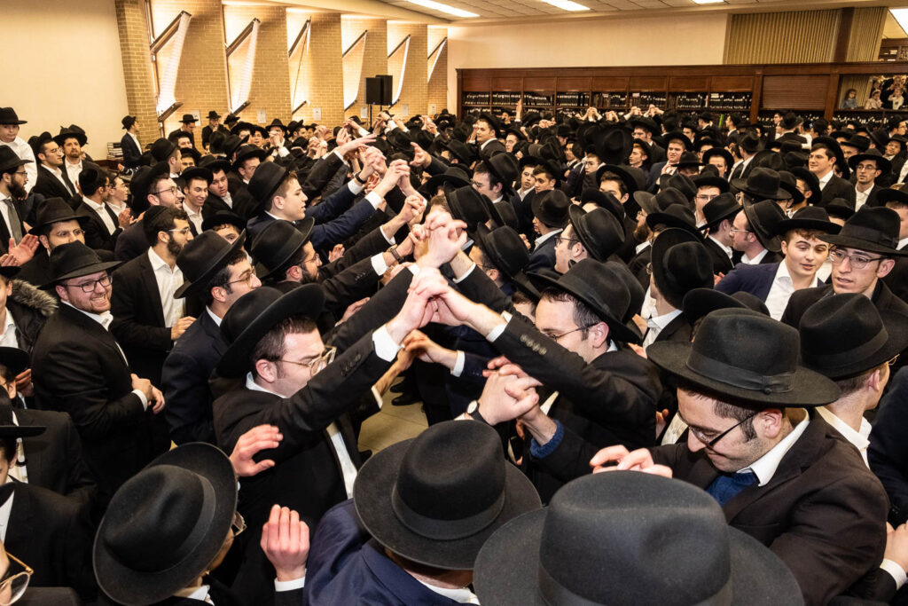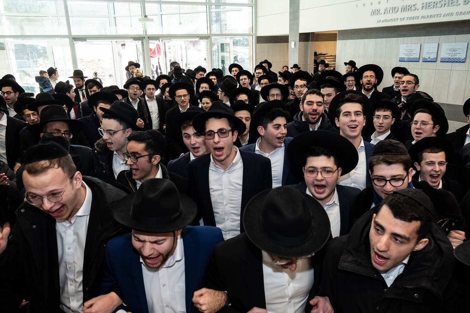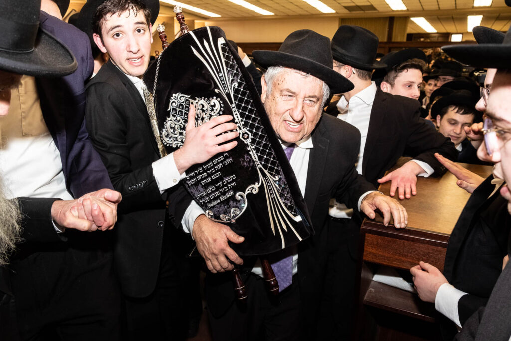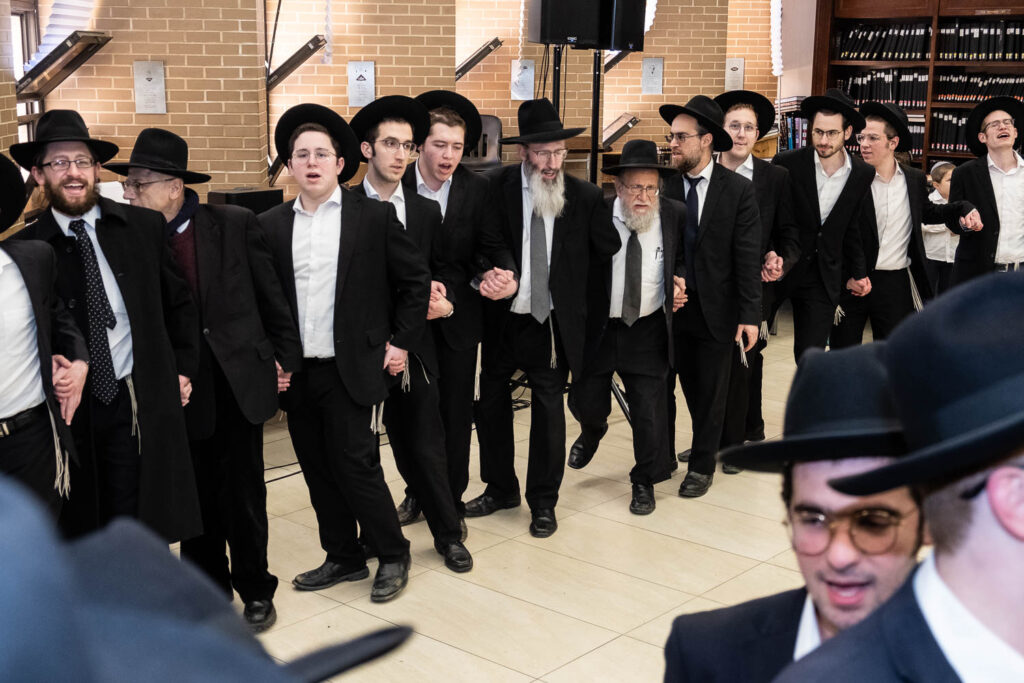 The Talmidei HaYeshiva, Mechina and Kollel led the procession from the dining room to the Yeshiva Beis Medrash.  Amidst live music and lively singing and dancing the sefer was brought to its new home inside the Ner Yisroel Aron Kodesh.  Families and children from Yeshiva Lane as well as from the greater Baltimore community came to watch and participate in this event of Kavod HaTorah.