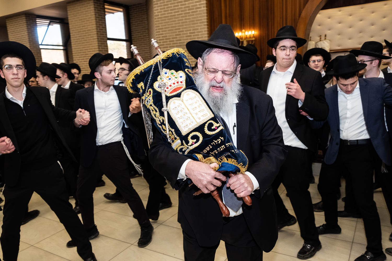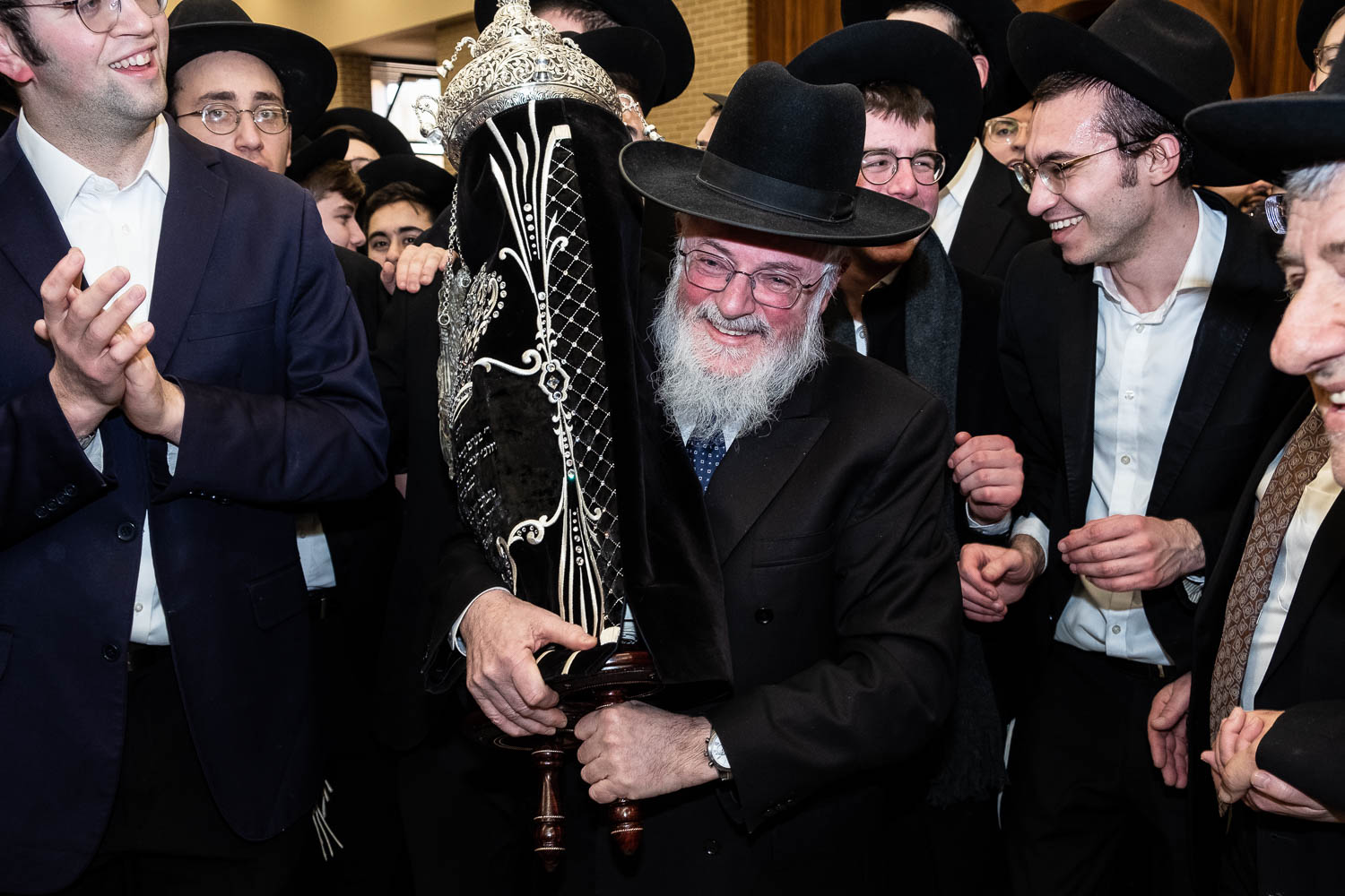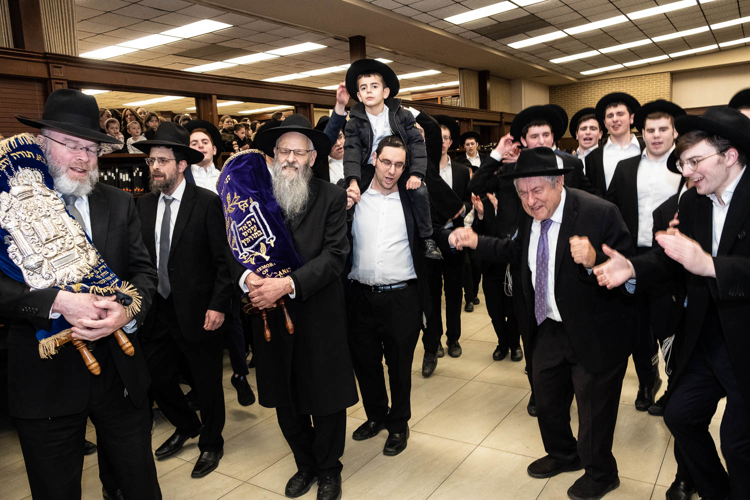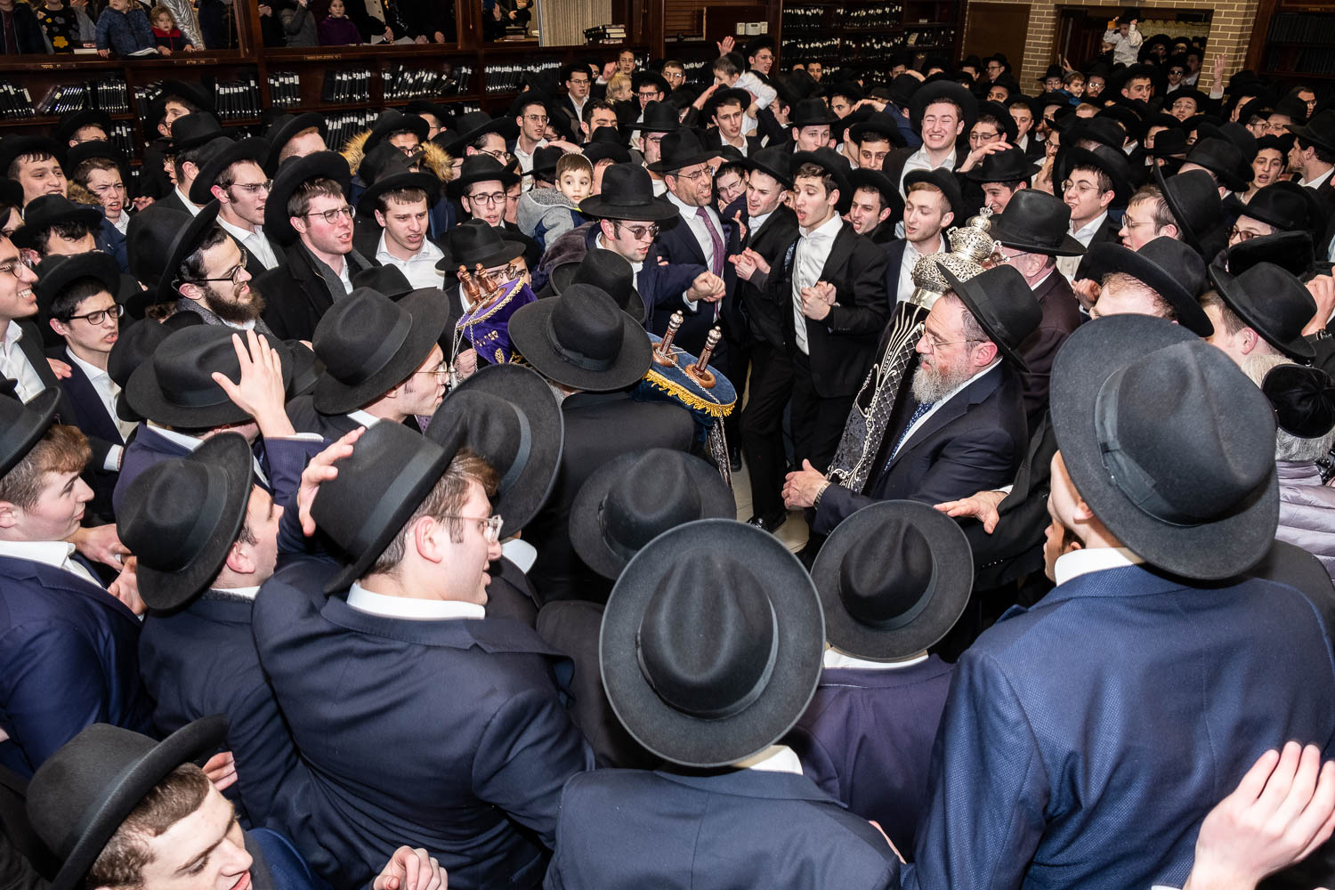 The Talmidei HaYeshiva, Mechina and Kollel led the procession from the dining room to the Yeshiva Beis Medrash.  Amidst live music and lively singing and dancing the sefer was brought to its new home inside the Ner Yisroel Aron Kodesh.  Families and children from Yeshiva Lane as well as from the greater Baltimore community came to watch and participate in this event of Kavod HaTorah.
