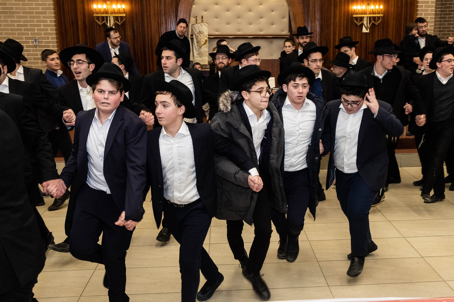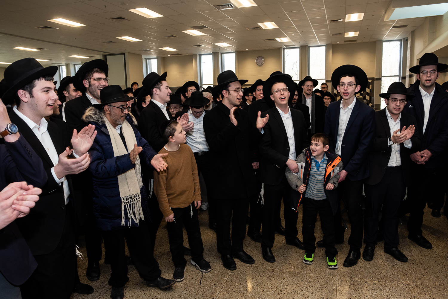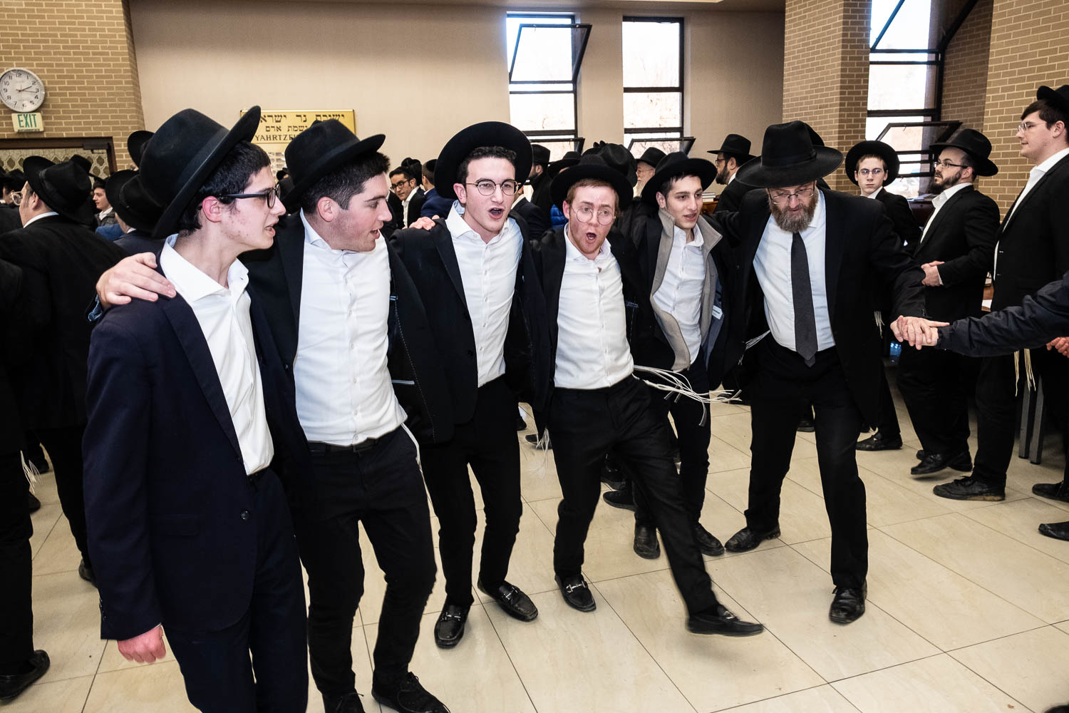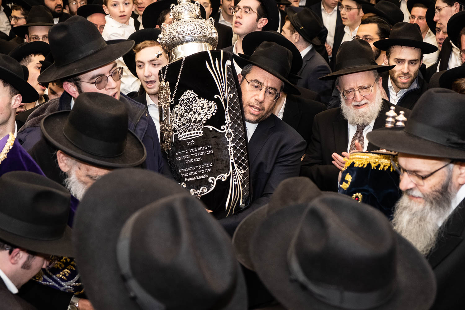 The Talmidei HaYeshiva, Mechina and Kollel led the procession from the dining room to the Yeshiva Beis Medrash.  Amidst live music and lively singing and dancing the sefer was brought to its new home inside the Ner Yisroel Aron Kodesh.  Families and children from Yeshiva Lane as well as from the greater Baltimore community came to watch and participate in this event of Kavod HaTorah.