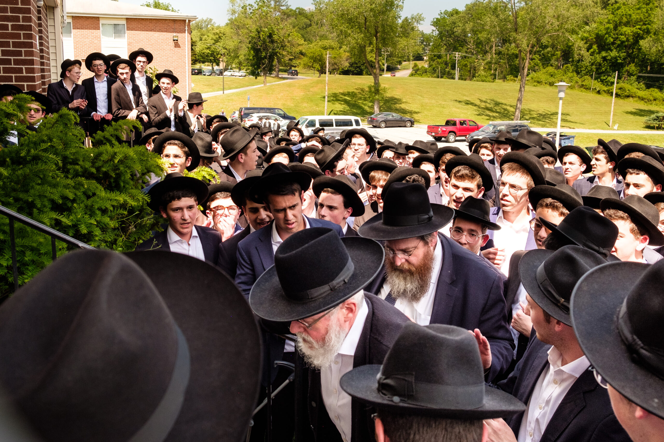 Shortly before Shavuos, Harav Simcha Cook, was struck by a car and was forced to spend a couple of weeks in hospital. B’Chasdei Hashem, he returned home yesterday and the Mechina bochurim came to dance around his car to welcome him back. May HKB”H grant Harav Cook a refuah shlaima b’karov, b’soch shar cholei Yisroel.