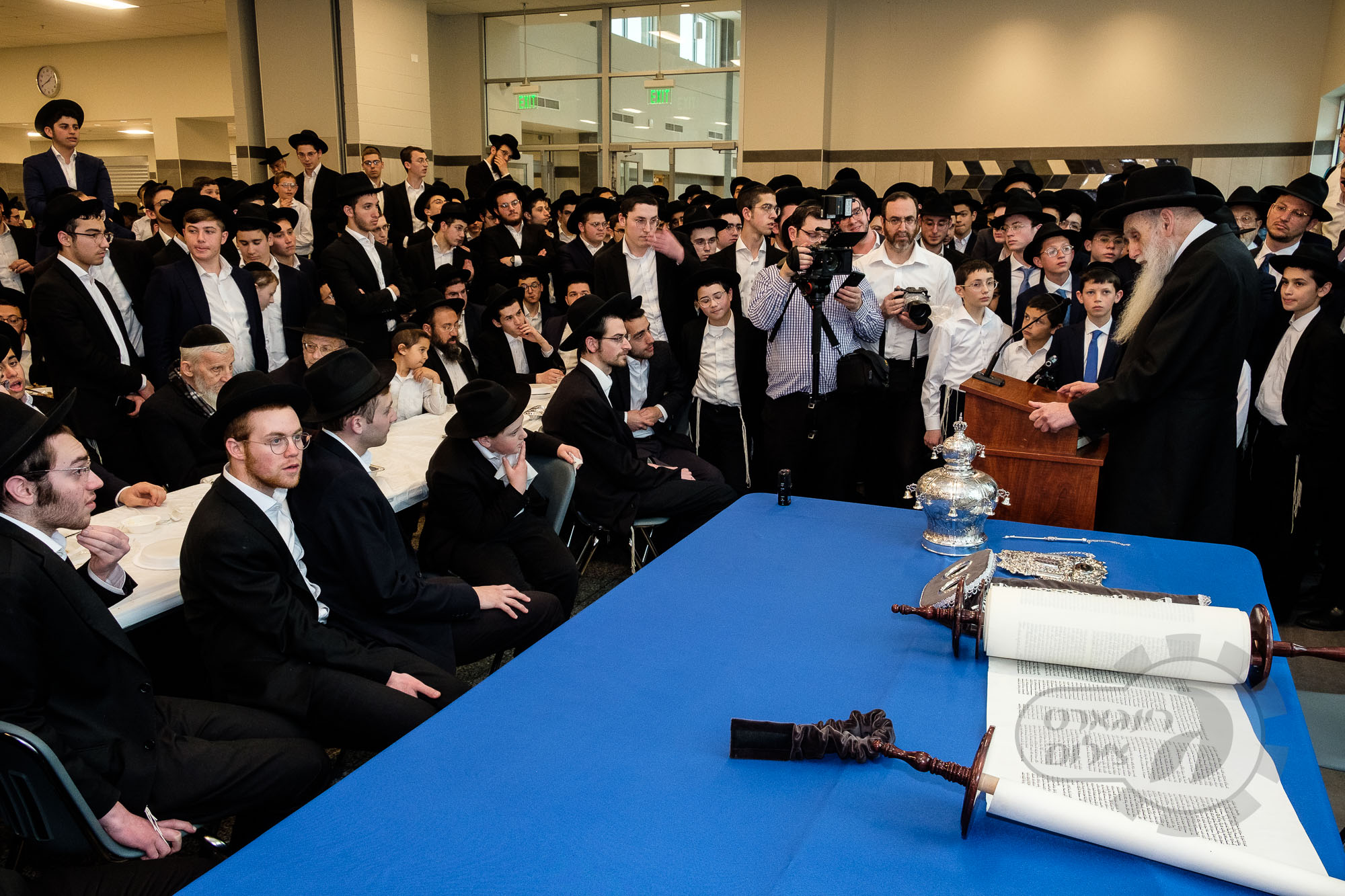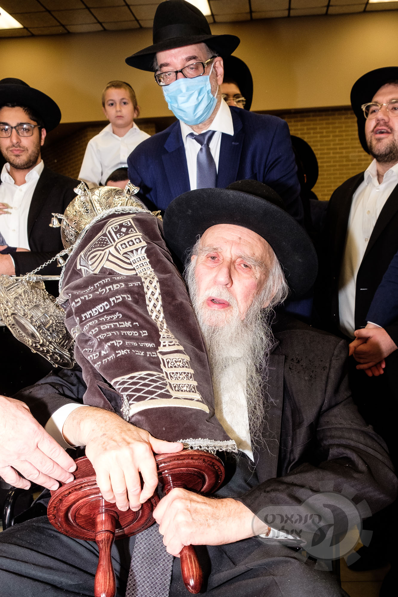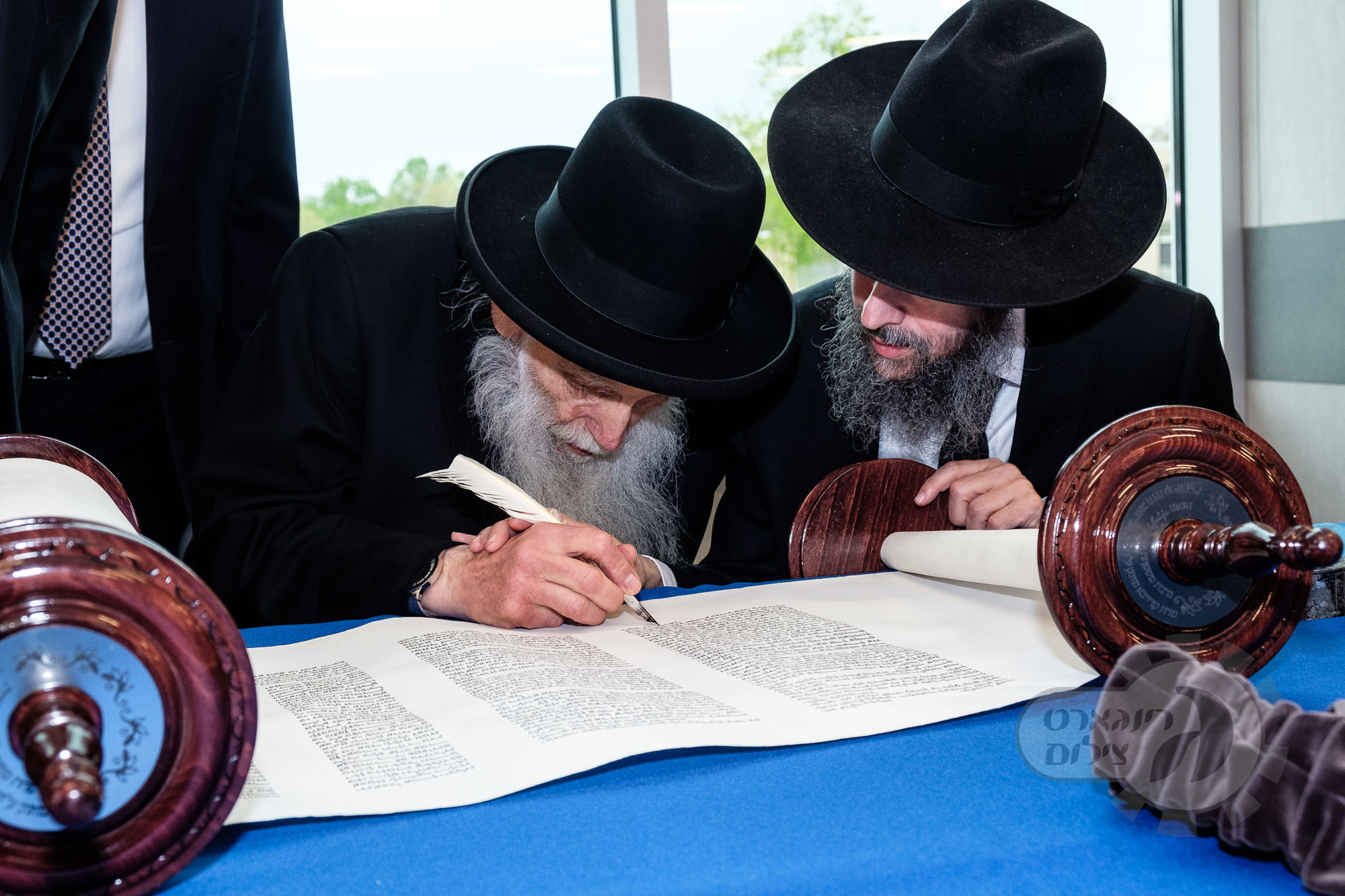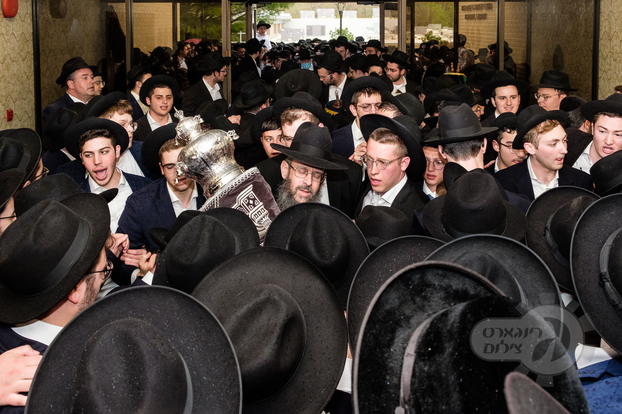 On Sunday, May 1st the Yeshiva held an Hachnosas Sefer Torah on campus. The new sefer was written by Rabbi Shlomo Naiman in memory and in honor of Rabbi Herman Naftoli Neuberger zt”l, the long time President of Ner Yisroel. The sefer was dedicated by the family of Dr. and Mrs. Zev Munk of Houston, TX in memory of Dr. Munk’s parents. Festivities began with the writing of the final letters of the Sefer Torah by the Yeshiva Rebbeim and Hanhala and members of the Munk family. Divrei bracha were given by the Rabbi Boruch Neuberger, Dr. Munk as well as by the Rosh HaYeshiva, Moreinu Harav Aharon Feldman shlit”a. Hundreds of yeshiva talmidim led the procession from the dining room to the Yeshiva Beis Medrash. Amidst live music and lively singing and dancing the Sefer was brought to its new home inside the Ner Yisroel Aron Kodesh. Families and children from those who live on the Yeshiva campus as well as from the greater Baltimore community came to watch and participate in this event of Kavod HaTorah.