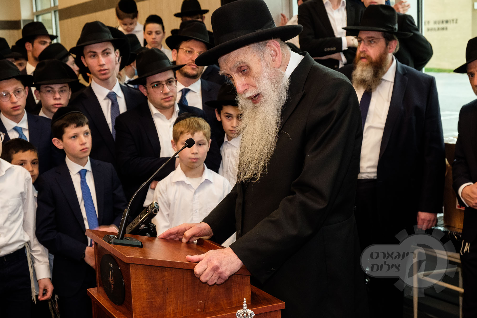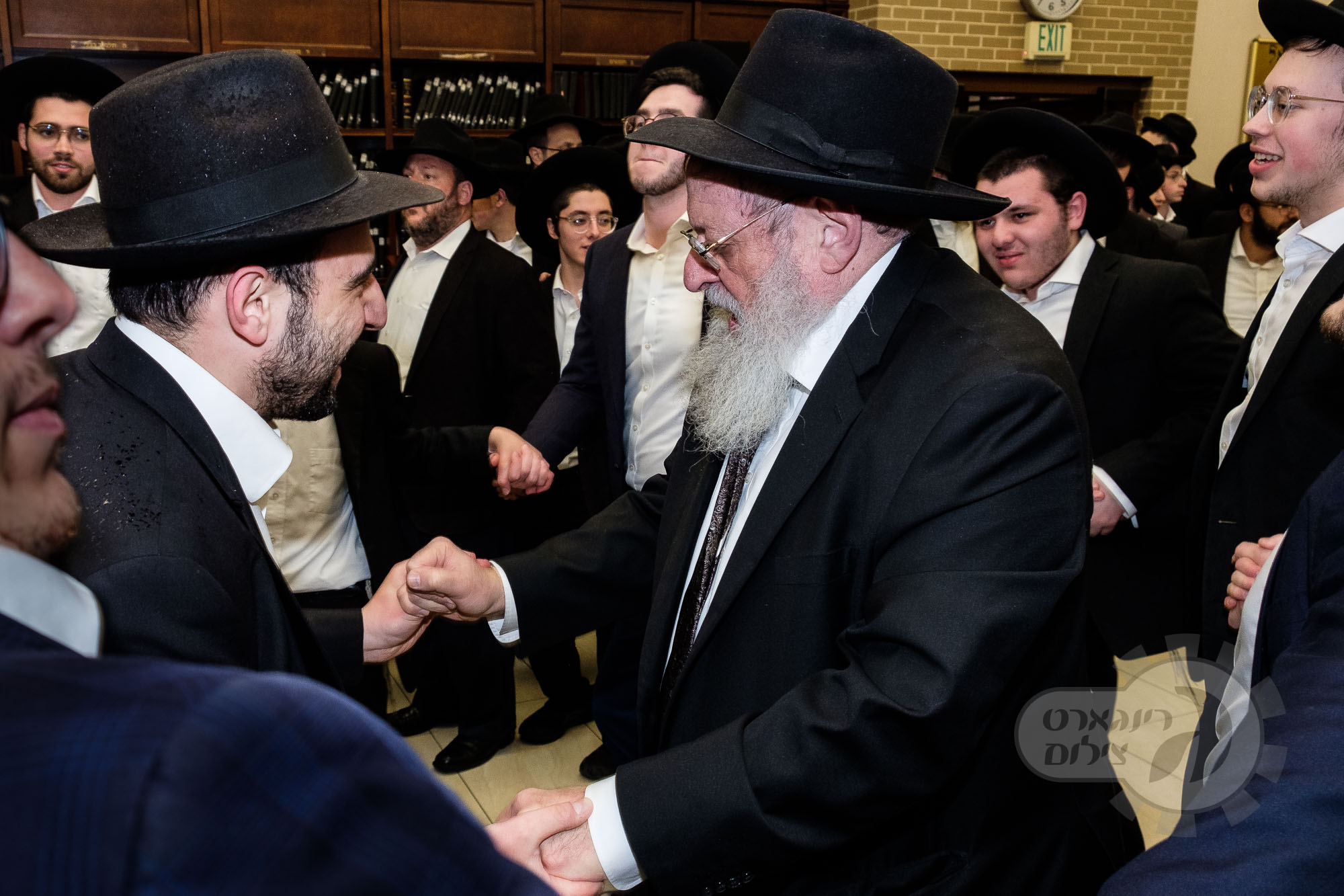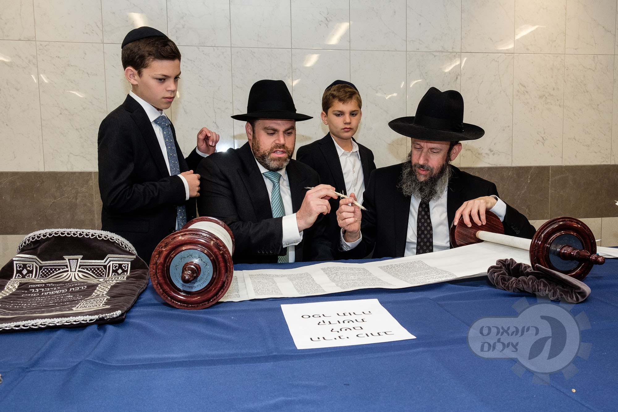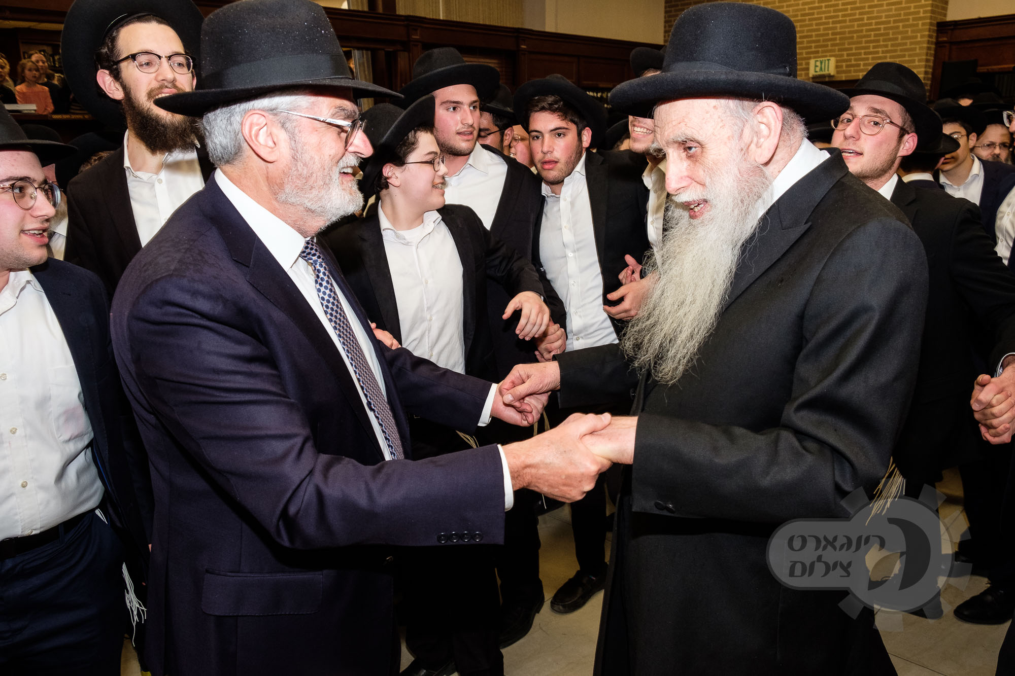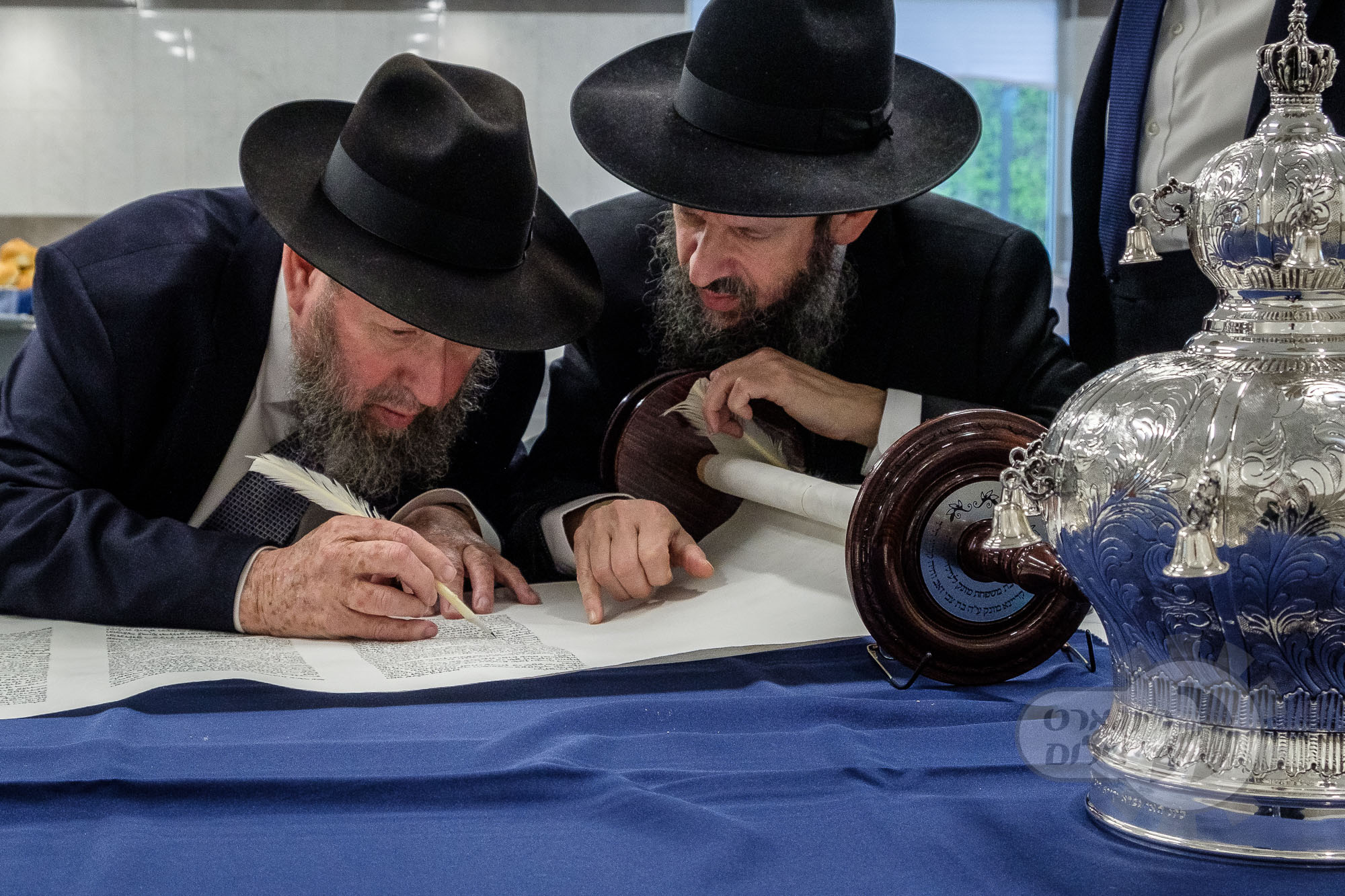 On Sunday, May 1st the Yeshiva held an Hachnosas Sefer Torah on campus. The new sefer was written by Rabbi Shlomo Naiman in memory and in honor of Rabbi Herman Naftoli Neuberger zt”l, the long time President of Ner Yisroel. The sefer was dedicated by the family of Dr. and Mrs. Zev Munk of Houston, TX in memory of Dr. Munk’s parents. Festivities began with the writing of the final letters of the Sefer Torah by the Yeshiva Rebbeim and Hanhala and members of the Munk family. Divrei bracha were given by the Rabbi Boruch Neuberger, Dr. Munk as well as by the Rosh HaYeshiva, Moreinu Harav Aharon Feldman shlit”a. Hundreds of yeshiva talmidim led the procession from the dining room to the Yeshiva Beis Medrash. Amidst live music and lively singing and dancing the Sefer was brought to its new home inside the Ner Yisroel Aron Kodesh. Families and children from those who live on the Yeshiva campus as well as from the greater Baltimore community came to watch and participate in this event of Kavod HaTorah.